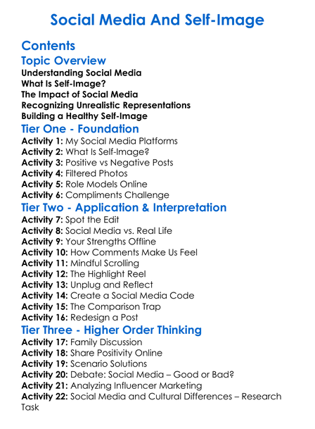 Social Media And Self-Image Worksheet Activity Booklet