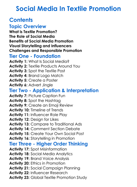 Social Media In Textile Promotion Worksheet Activity Booklet