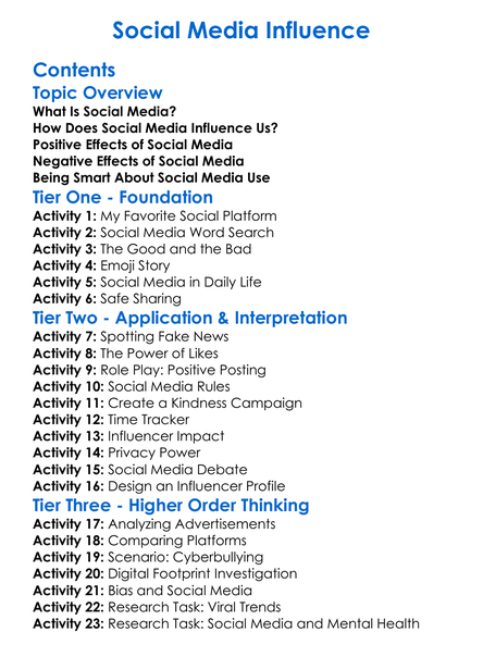 Social Media Influence Worksheet Activity Booklet