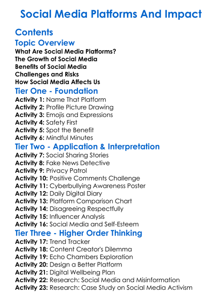 Social Media Platforms And Impact Worksheet Activity Booklet