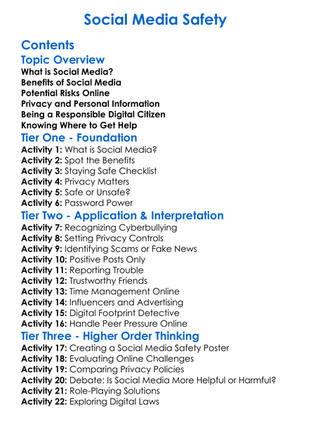 Social Media Safety Worksheet Activity Booklet
