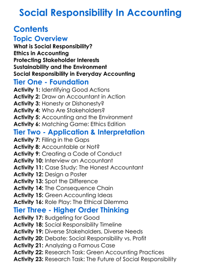 Social Responsibility In Accounting Worksheet Activity Booklet