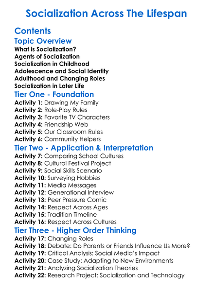 Socialization Across The Lifespan Worksheet Activity Booklet