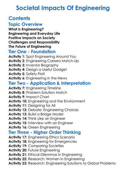 Societal Impacts Of Engineering Worksheet Activity Booklet