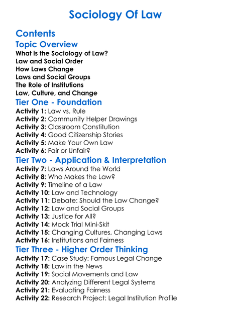 Sociology Of Law Worksheet Activity Booklet