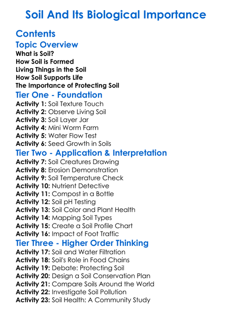 Soil And Its Biological Importance Worksheet Activity Booklet