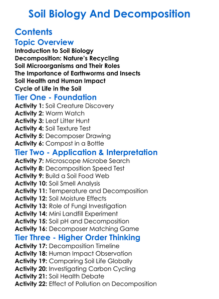 Soil Biology And Decomposition Worksheet Activity Booklet