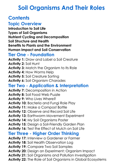 Soil Organisms And Their Roles Worksheet Activity Booklet