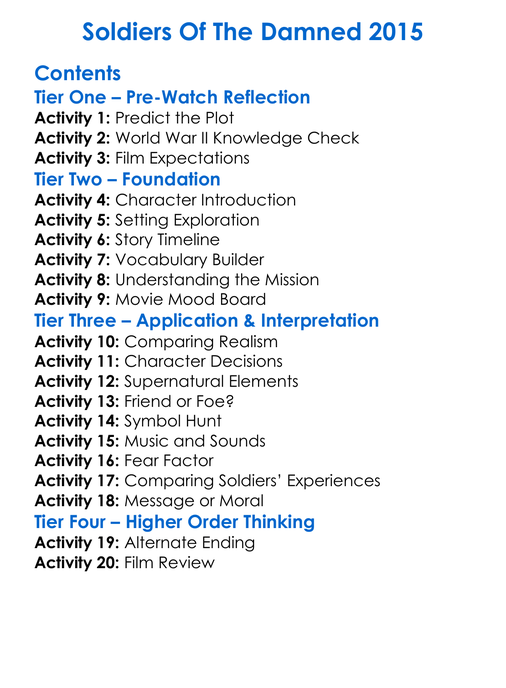 Soldiers Of The Damned 2015 Worksheet Activity Booklet