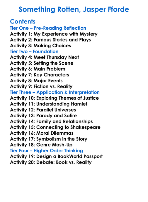 Something Rotten Jasper Fforde Worksheet Activity Booklet