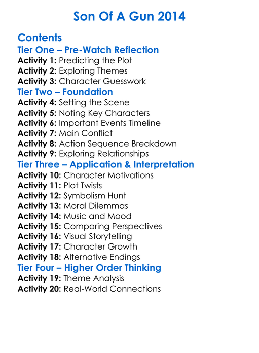 Son Of A Gun 2014 Worksheet Activity Booklet