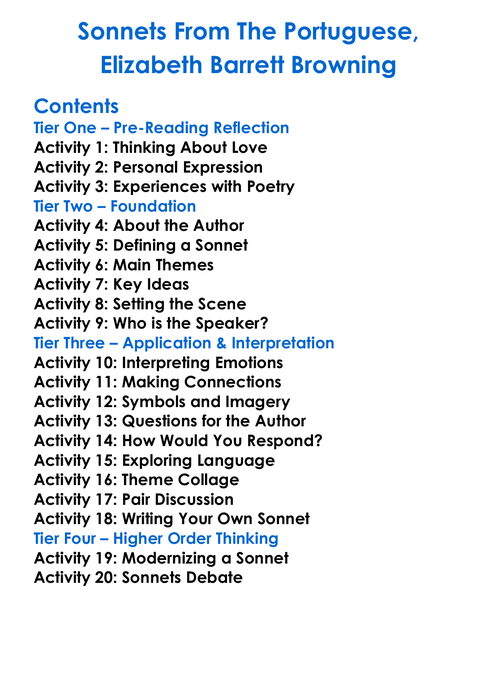 Sonnets From The Portuguese Elizabeth Barrett Browning Worksheet Activity Booklet