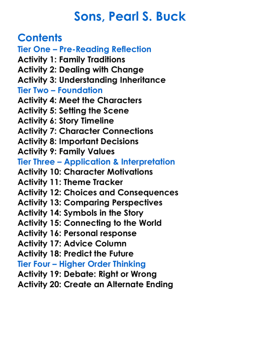 Sons Pearl S Buck Worksheet Activity Booklet