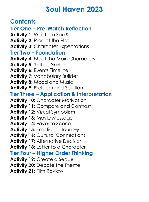 Soul Haven 2023 Worksheet Activity Booklet