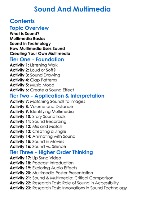 Sound And Multimedia Worksheet Activity Booklet