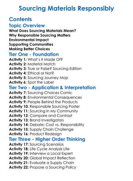 Sourcing Materials Responsibly Worksheet Activity Booklet