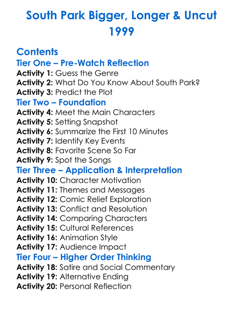 South Park Bigger Longer Uncut 1999 Worksheet Activity Booklet