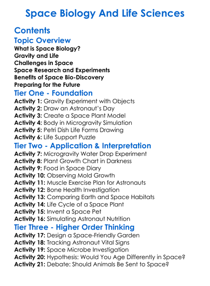 Space Biology And Life Sciences Worksheet Activity Booklet