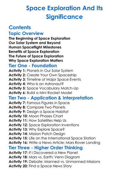 Space Exploration And Its Significance Worksheet Activity Booklet