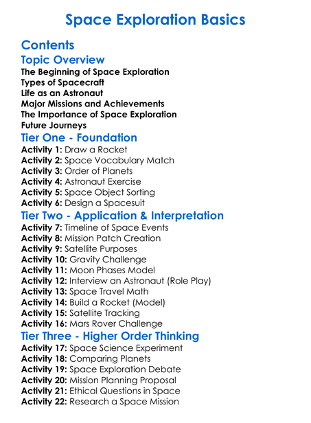 Space Exploration Basics Worksheet Activity Booklet