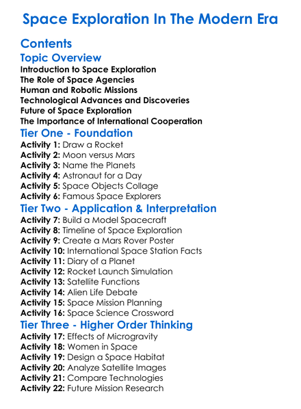 Space Exploration In The Modern Era Worksheet Activity Booklet