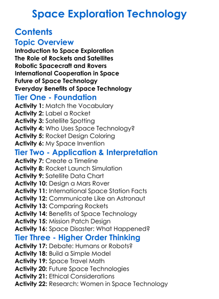 Space Exploration Technology Worksheet Activity Booklet