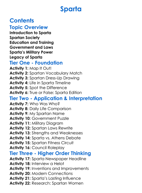 Sparta Worksheet Activity Booklet