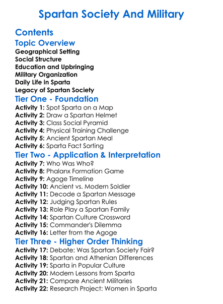 Spartan Society And Military Worksheet Activity Booklet