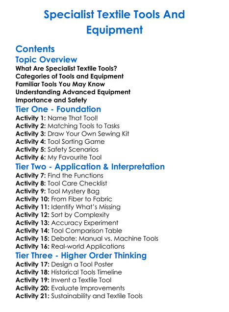 Specialist Textile Tools And Equipment Worksheet Activity Booklet
