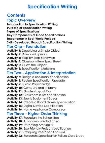 Specification Writing Worksheet Activity Booklet