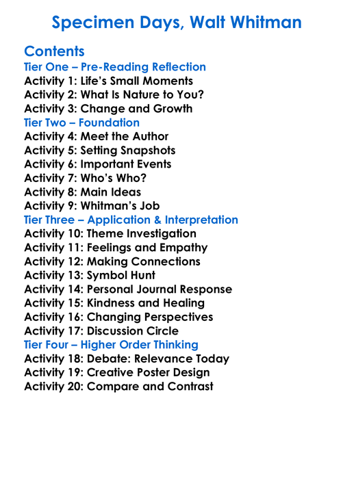 Specimen Days Walt Whitman Worksheet Activity Booklet