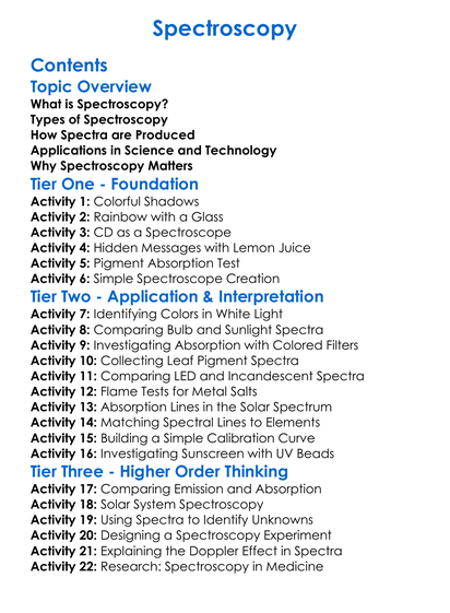 Spectroscopy Worksheet Activity Booklet