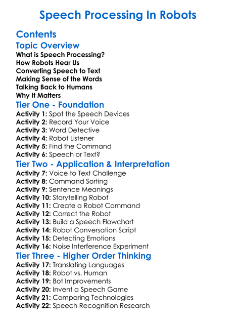 Speech Processing In Robots Worksheet Activity Booklet