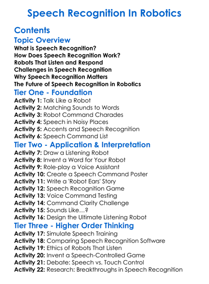 Speech Recognition In Robotics Worksheet Activity Booklet
