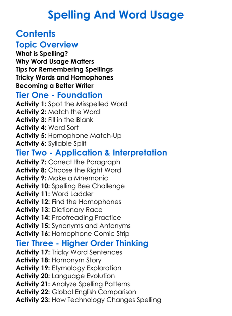 Spelling And Word Usage Worksheet Activity Booklet