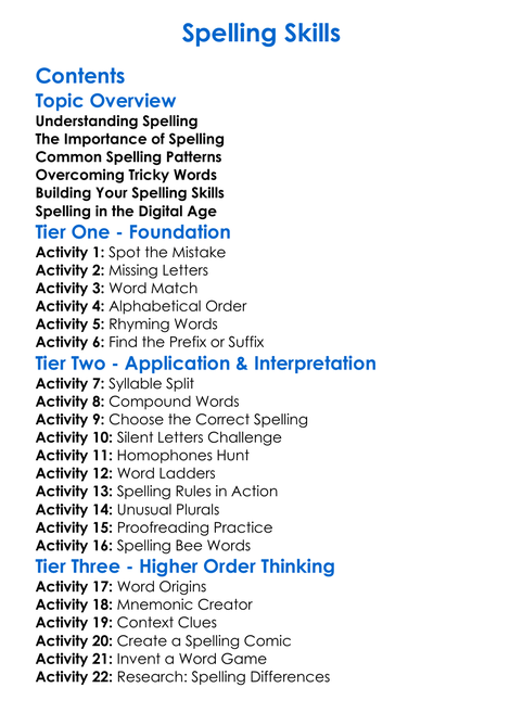 Spelling Skills Worksheet Activity Booklet