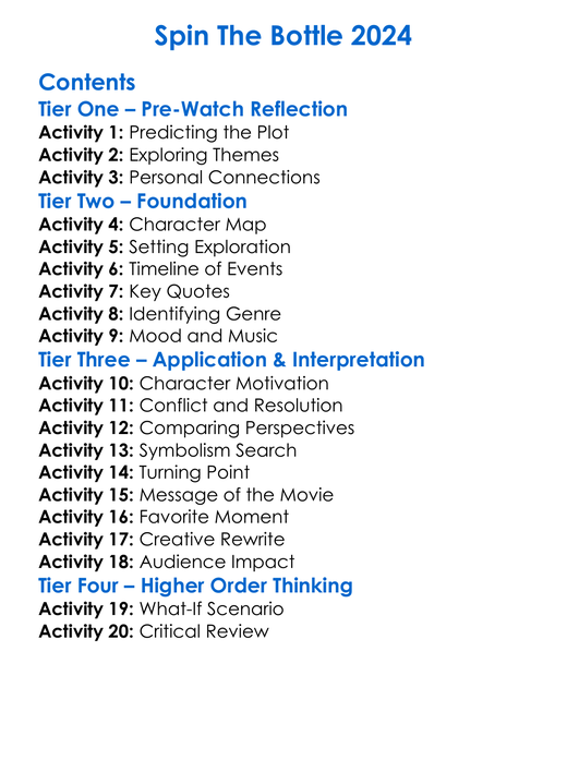 Spin The Bottle 2024 Worksheet Activity Booklet