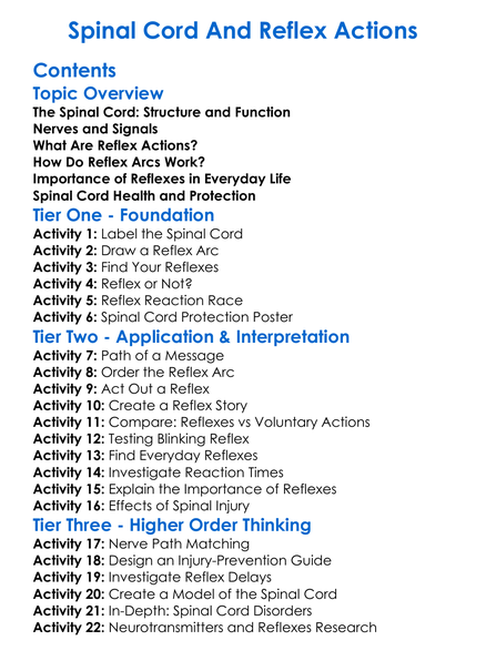 Spinal Cord And Reflex Actions Worksheet Activity Booklet
