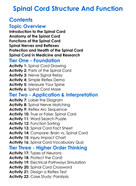 Spinal Cord Structure And Function Worksheet Activity Booklet