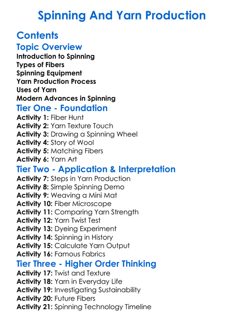 Spinning And Yarn Production Worksheet Activity Booklet