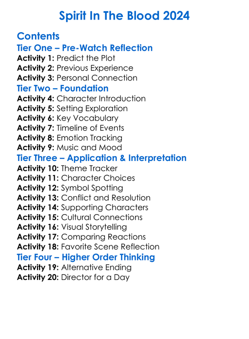 Spirit In The Blood 2024 Worksheet Activity Booklet