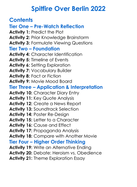 Spitfire Over Berlin 2022 Worksheet Activity Booklet