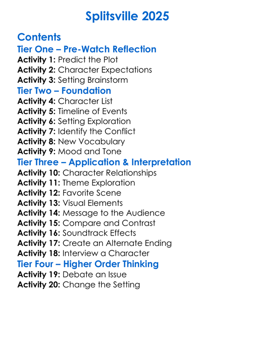 Splitsville 2025 Worksheet Activity Booklet