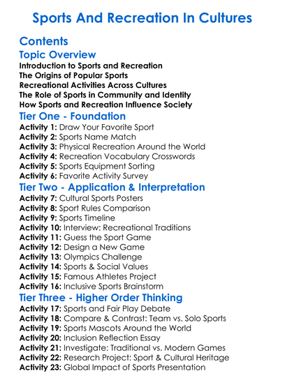Sports And Recreation In Cultures Worksheet Activity Booklet