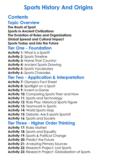 Sports History And Origins Worksheet Activity Booklet