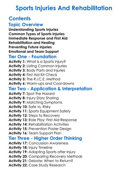 Sports Injuries And Rehabilitation Worksheet Activity Booklet