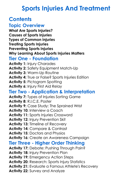 Sports Injuries And Treatment Worksheet Activity Booklet