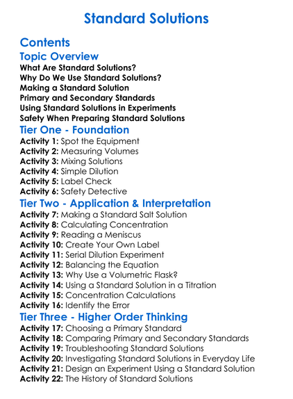 Standard Solutions Worksheet Activity Booklet