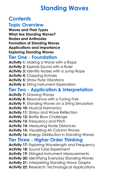 Standing Waves Worksheet Activity Booklet