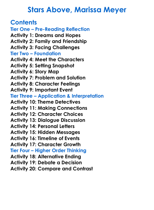 Stars Above Marissa Meyer Worksheet Activity Booklet